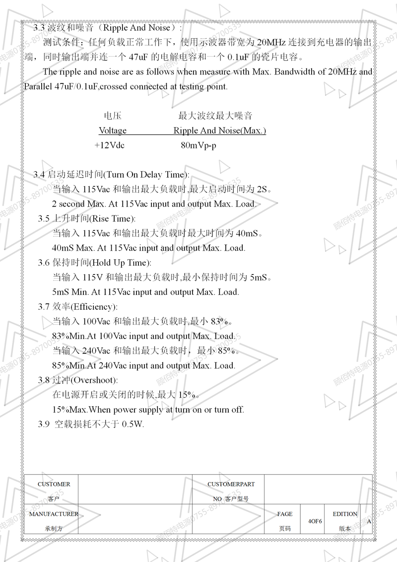 電源規(guī)格書