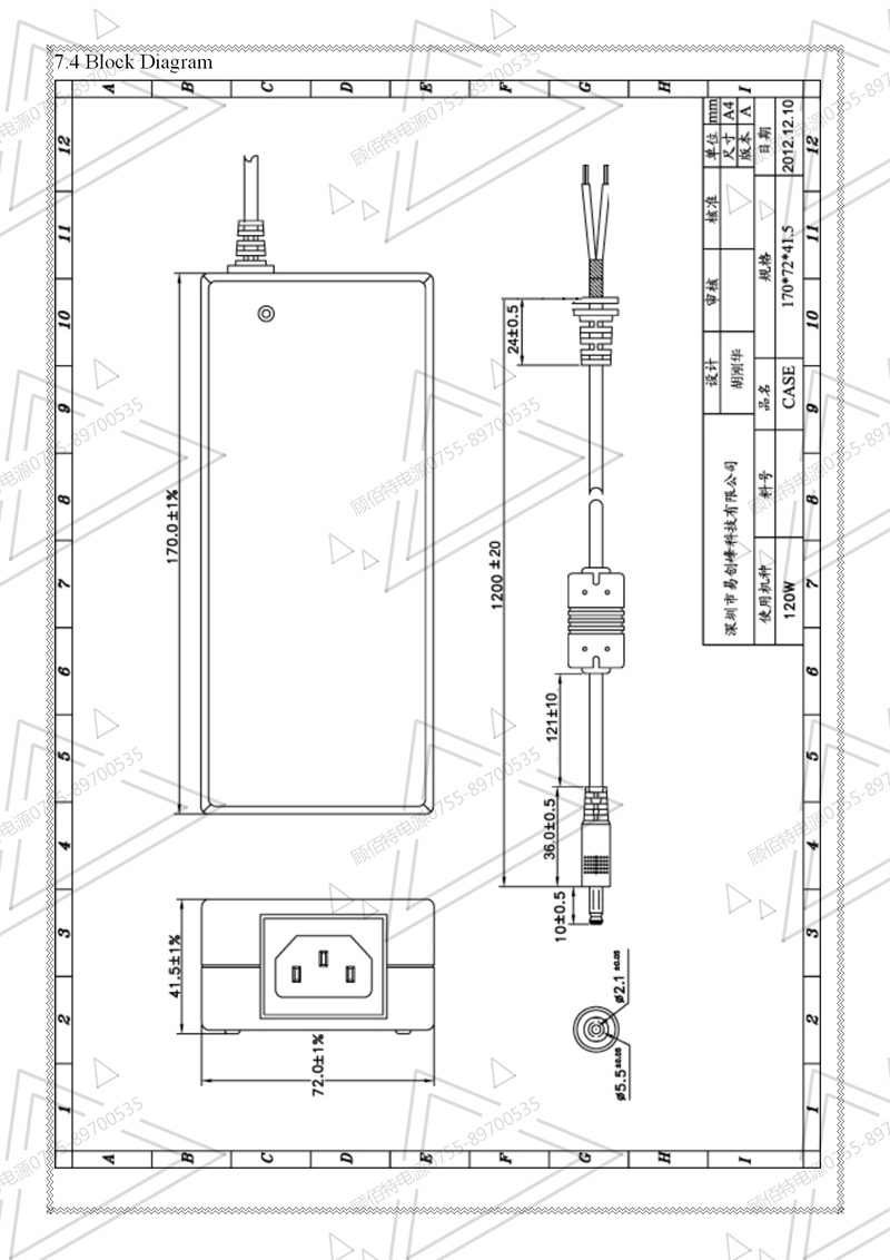 19V3.5A電源適配器規(guī)格書