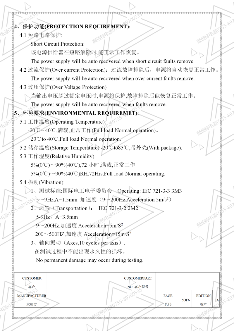 電源規(guī)格書